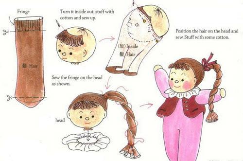 Отдельно хочу показать вам небольшие инструкции, как сделать прическу для капроновых пупсов. Для этого необходим носок (в полоску лучше всего).