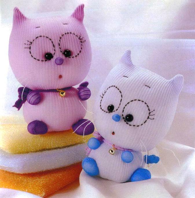 Из капроновых носков по той же технологии можно сделать зверят, например таких: