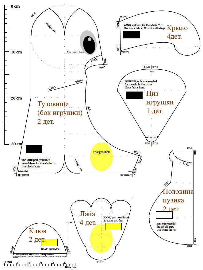 Как же сшить пингвина Linux? В этом вам поможет эта выкройка (для увеличения необходимо нажать):