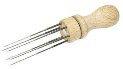 Для того, чтобы процесс шел быстрее - используют сразу несколько игл. Для того, чтобы не держать в руке кучу иголок - можно соорудить (или купить) специальный иглодержатель. Вот такой например: